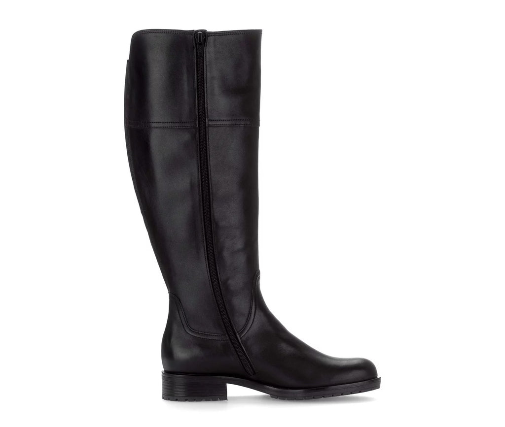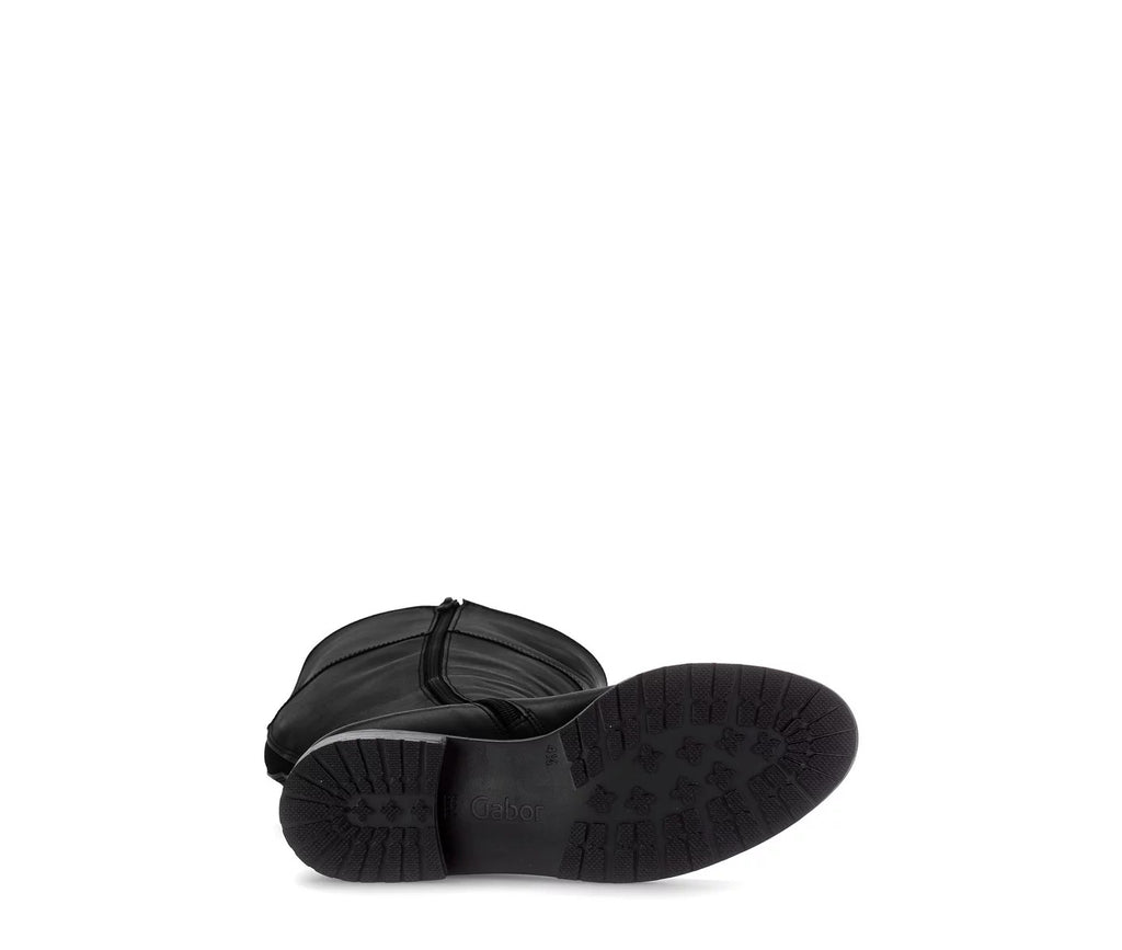 Step out in style with the Gabor Women's Foulardcalf Boots in Black. Crafted from supple leather, these tall calf boots hug your legs comfortably thanks to the stretchy elastic around the calf. Perfect for adding a chic touch to any outfit while keeping you cozy and comfy all day long. Who said stylish and comfortable can’t be best friends?
